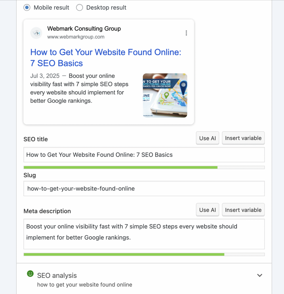 If your website looks great but no one’s finding it, there’s a good chance you’re missing the foundational SEO setup. At Webmark Group, we often see beautiful sites that are invisible to search engines simply because a few basic steps were skipped. The good news is these fixes are simple and, in most cases, only need to be done once.